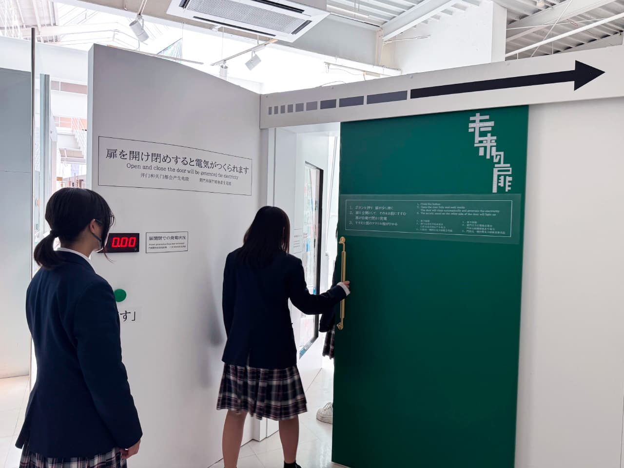 あわせて、ドアハンドルを製造する企業として当社が開発し、大阪・関西万博に出展した「生活発電システム」も紹介しました。これは、扉の開閉動作によって電力を生み出す仕組みで、身近な行動をエネルギーへと変換する新たな可能性を提案するものです。